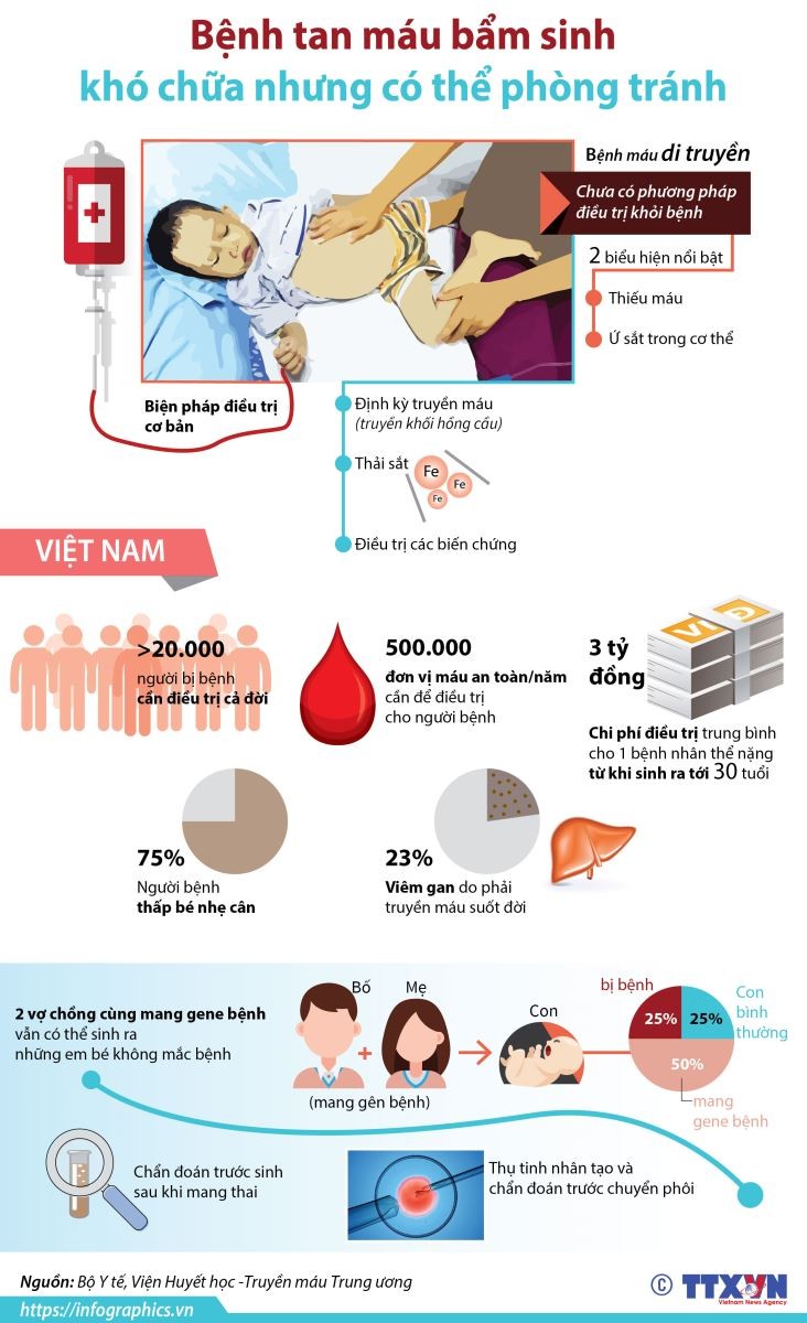 Ngày 12/4, Tổng cục Dân số - Kế hoạch hóa gia đình (Bộ Y tế) cho biết ngày Thalassemia thế giới (8/5) năm nay có chủ đề: “Giải quyết bất bình đẳng trong chăm sóc y tế đối với bệnh nhân tan máu bẩm sinh”.
