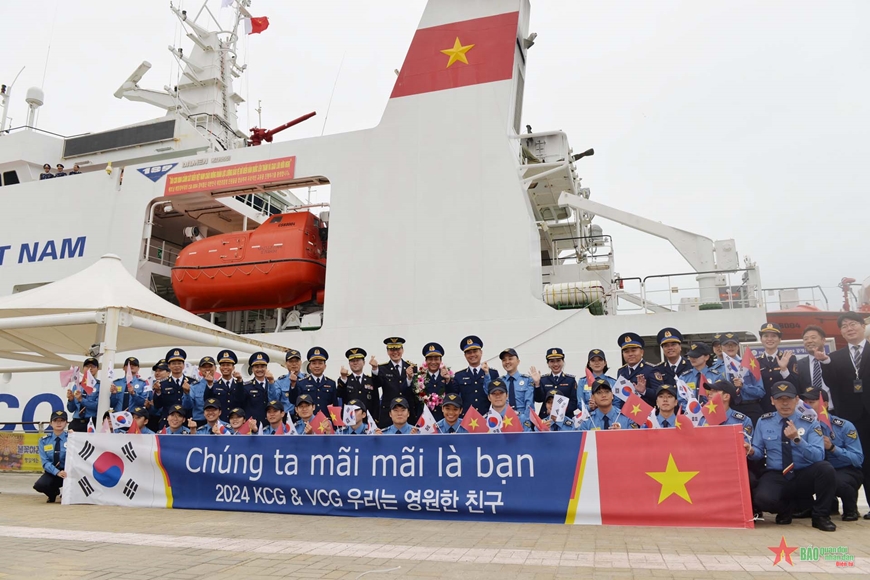 Đoàn Cảnh sát biển Việt Nam và Lực lượng Bảo vệ bờ biển Hàn Quốc tại lễ đón - Ảnh: qdnd.vn |