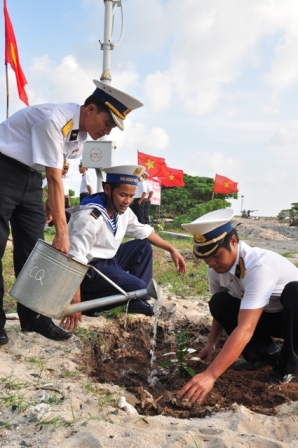 Dưới cờ Tổ quốc, Quốc ca được cán bộ, chiến sỹ và nhân dân huyện đảo đồng thanh hát vang. Từ đảo Trường Sa, Song Tử Tây, Nam Yết, Sinh Tồn hay ở các đảo chìm như Đá Lát, Đá Nam, Thuyền Chài… cùng vang vọng lời ca, hòa vào tiếng sóng, tiếng gió của biển cả, chào đón một mùa Xuân mới đang về với huyện đảo Trường Sa. Tiếng hát cũng là lời hứa, khẳng định quyết tâm của các cán bộ, chiến sỹ và nhân dân ở quần đảo Trường Sa sẽ giữ vững chủ quyền biển đảo thiêng liêng của Tổ quốc. Trung tá Trần Văn Hùng, Chính trị viên đảo Nam Yết, chia sẻ: Cờ đỏ sao vàng là hình ảnh của đất nước Việt Nam, vì vậy cán bộ, chiến sỹ và nhân dân huyện đảo khi đứng dưới lá cờ đều hướng về Tổ quốc thân yêu. Lá cờ đỏ sao vàng như tiếp thêm sức mạnh để quân và dân huyện đảo hoàn thành xuất sắc nhiệm vụ được giao, để bảo vệ vững chắc Tổ quốc Việt Nam xã hội chủ nghĩa.