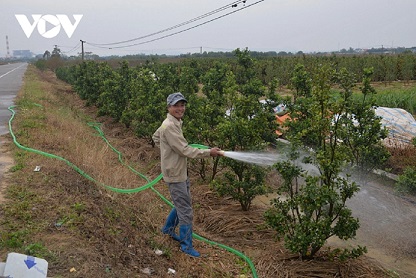 Từ sáng sớm, những người nông dân trồng hoa ở thôn Đồng Đò, xã Bình Khê, Thị xã Đông Triều, tỉnh Quảng Ninh, đã tất bật trên cánh đồng. Từng vườn quất, hoa đào, hoa ly, hoa cúc… được chăm chút tỉ mỉ từ việc bón phân, tưới nước, tỉa cành...