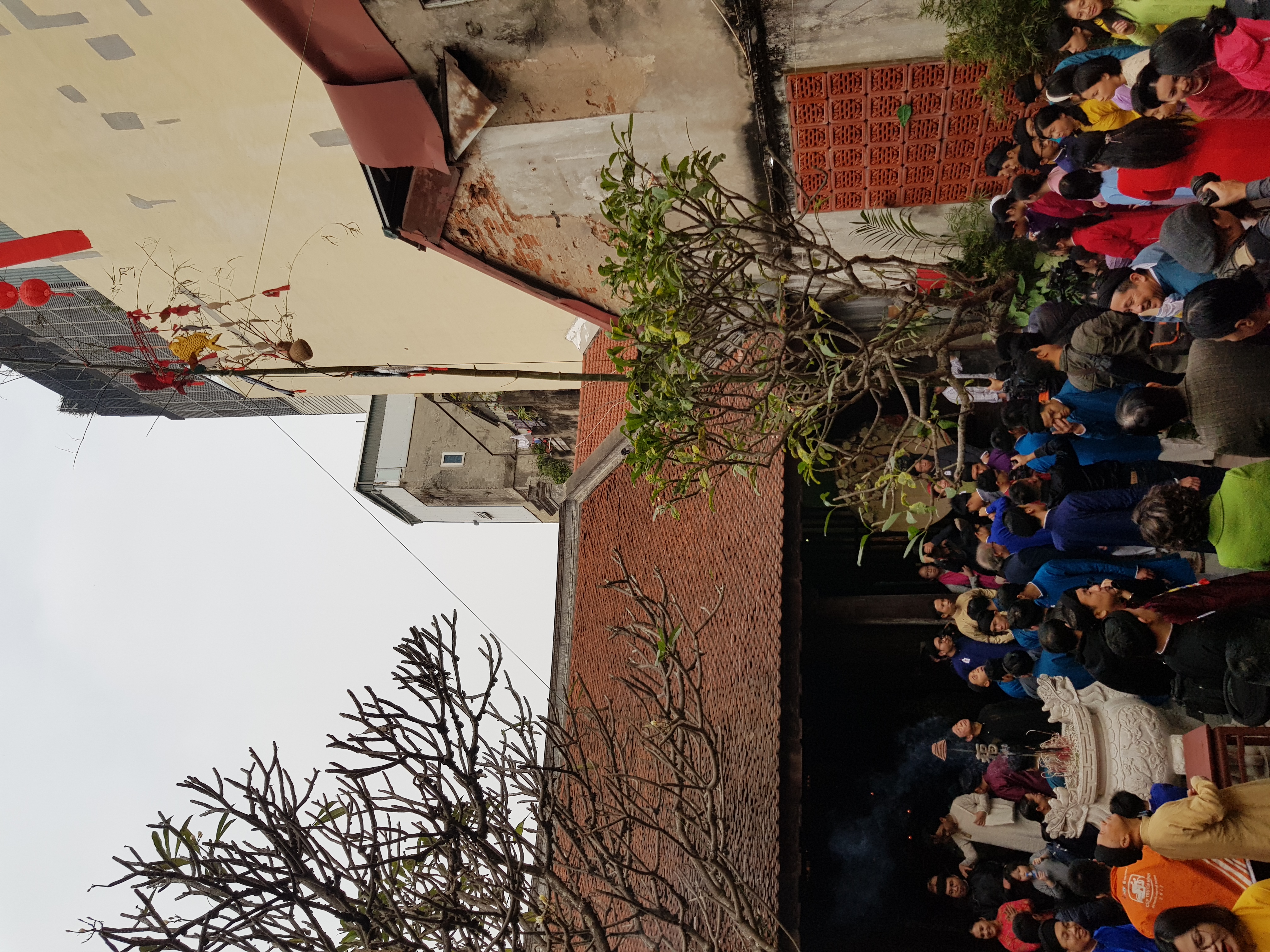 Quang cảnh dựng cây nêu tại Đình Kim Ngân. Ảnh: Ngọc Anh |