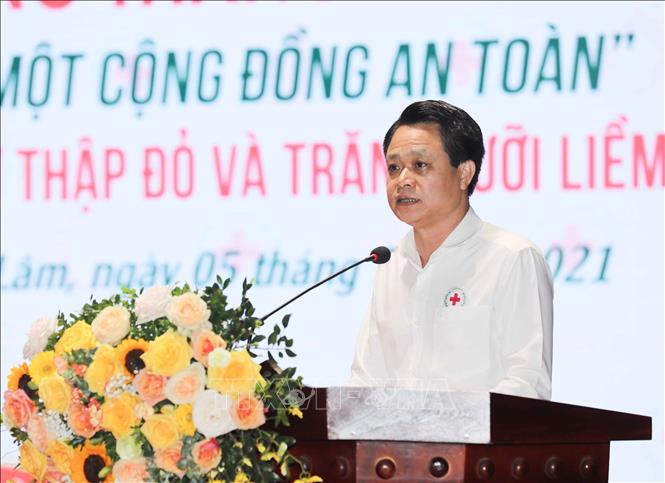 Chủ tịch Hội Chữ thập đỏ Thành phố Hà Nội Đào Ngọc Triệu phát động tháng nhân đạo. Ảnh: Thanh Tùng/TTXVN |