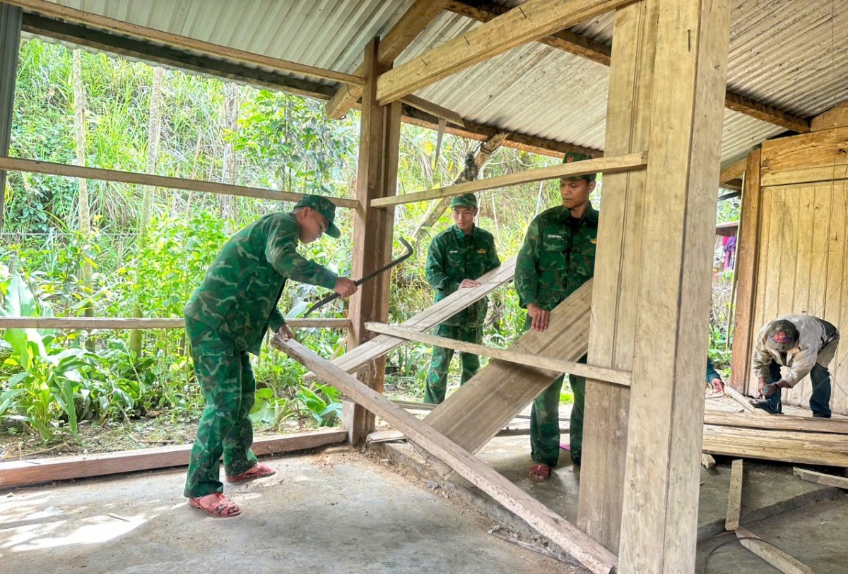 Đồn Biên phòng Ga Ry di dời các hộ dân ở xã Hùng Sơn, TP. Đà Nẵng, đề phòng mưa lớn do bão số 13 gây ra. Ảnh: Đồn biên phòng cung cấp |