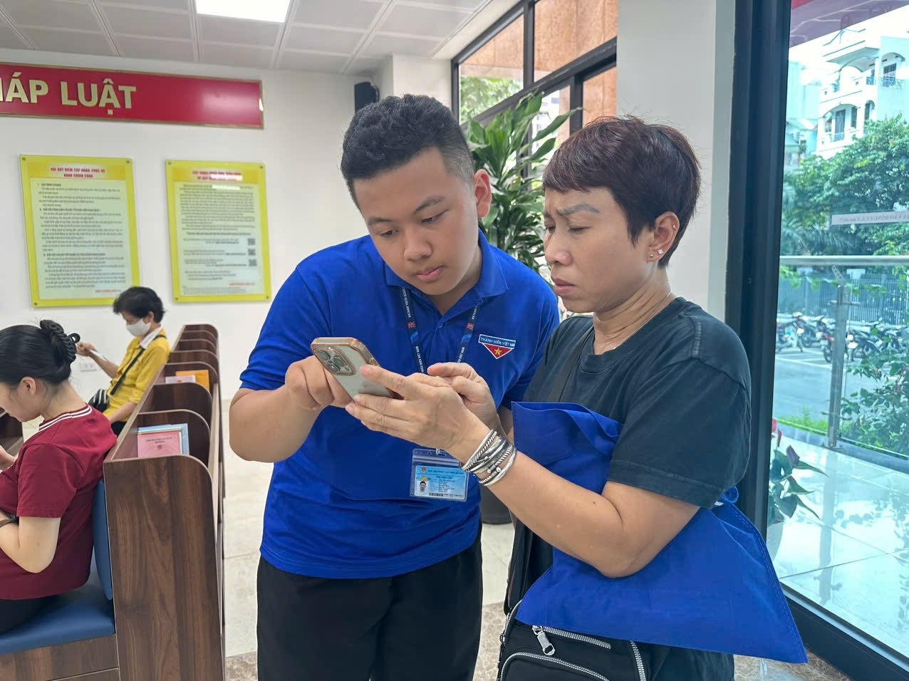 Bạn Nguyễn Mai Anh- Bí thư đoàn phường Đống Đa hướng dẫn người dân làm thủ tục hành chính |
