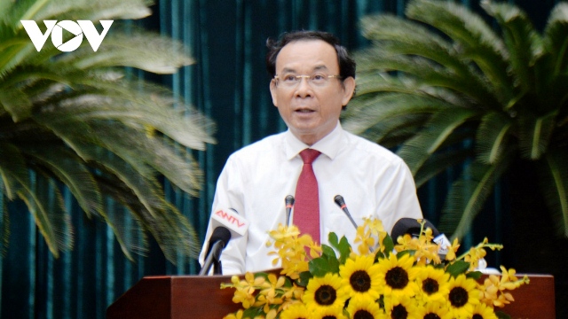 Bí thư Thành ủy TP. Hồ Chí Minh Nguyễn Văn Nên phát biểu. Ảnh: VOV |