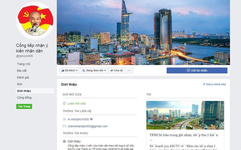 Mới đây, Thành phố Hồ Chí Minh đã ra mắt trang fanpage “Cổng tiếp nhận ý kiến nhân dân” trên mạng xã hội Facebook, để người dân dễ dàng gửi ý kiến và góp ý trực tiếp bằng cách bình luận trong các bài viết của trang. Trên cơ sở nội dung ý kiến gửi về trang, lãnh đạo thành phố cùng các cơ quan, ban, ngành sẽ đến trực tiếp lắng nghe các ý kiến, các giải pháp thiết thực, có giá trị cao, giải quyết các vấn đề phức tạp, điểm nghẽn của Thành phố hiện nay.