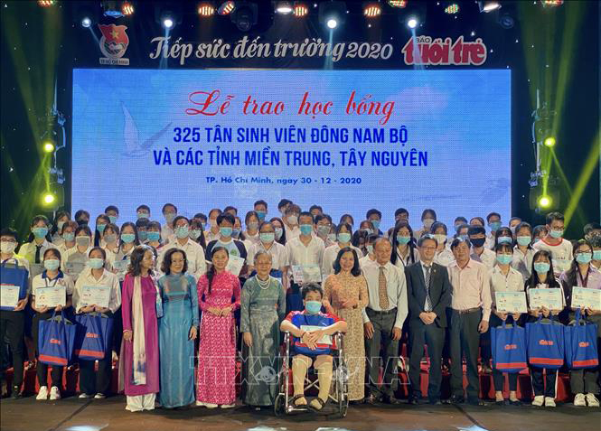 Tối 30/12, Thành Đoàn Thành phố Hồ Chí Minh tổ chức Lễ trao học bổng “Tiếp sức đến trường” dành cho 325 sinh viên vừa trúng tuyển các trường cao đẳng, đại học trên địa bàn Thành phố Hồ Chí Minh; tổng kết Chương trình học bổng “Tiếp sức đến trường” năm 2020.