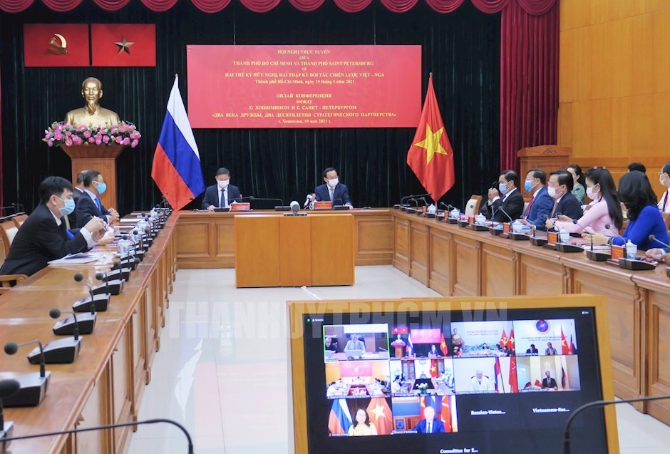 (VOV5) - Ngày 19/5, lãnh đạo Thành phố Hồ Chí Minh và thành phố Saint Petersburg, LB Nga, tổ chức hội nghị trực tuyến với chủ đề “Hai thế kỷ hữu nghị, hai thập kỷ đối tác chiến lược” nhân kỷ niệm 20 năm Việt Nam và LB Nga thiết lập quan hệ đối tác chiến lược (2001 - 2021).