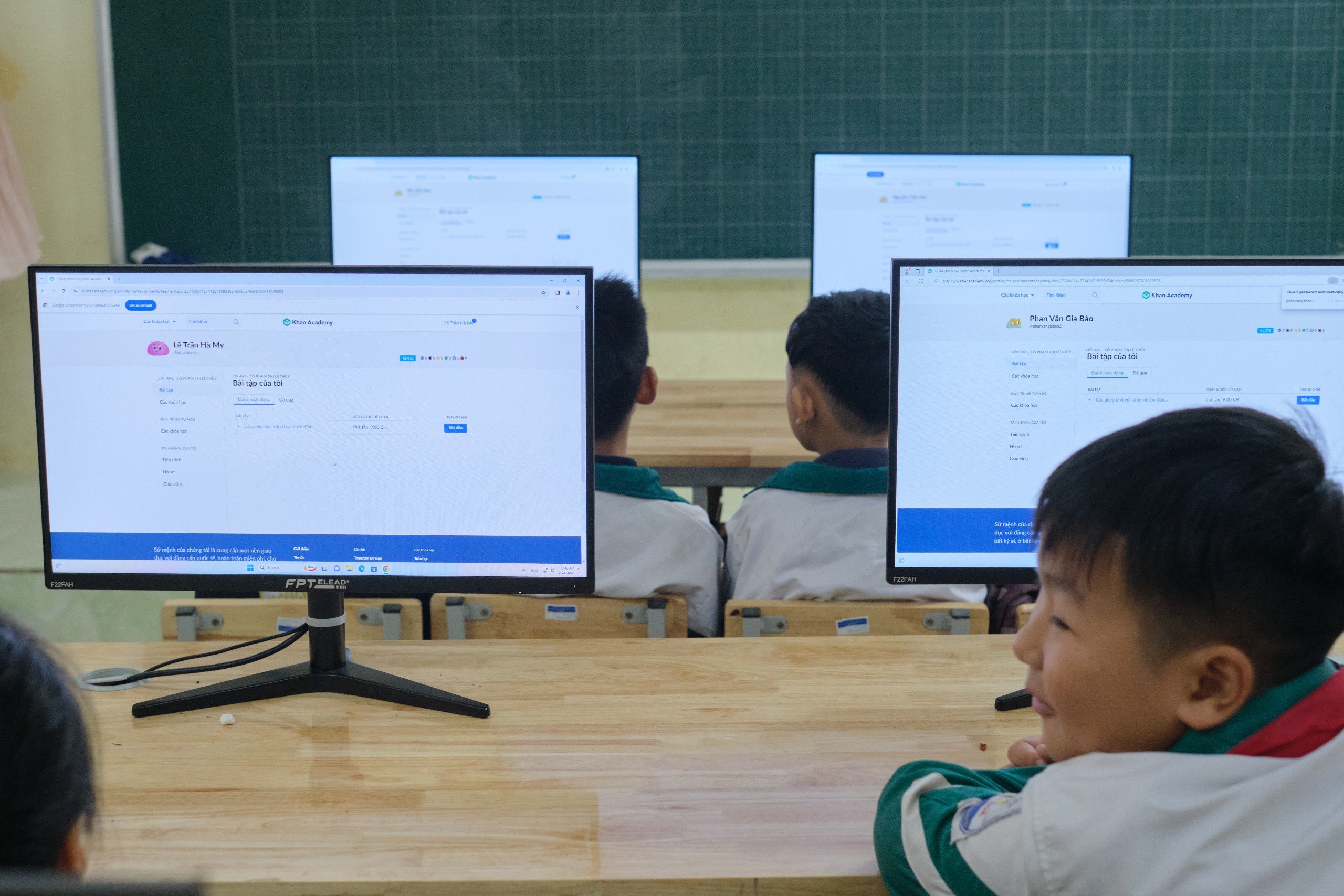 Giờ học trên ứng dụng Khan Academy của 1 trường tiểu học Sơn Trương, Tuyên Quang. Ảnh Mai Huệ |