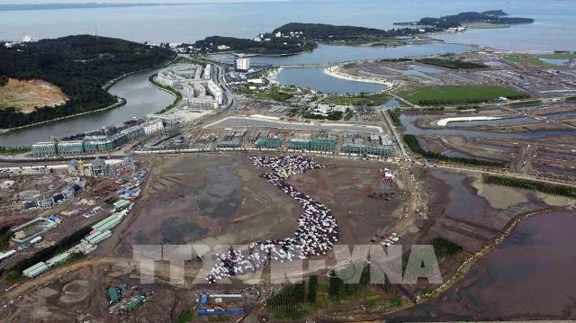 Kỷ lục xếp hình bản đồ Việt Nam bằng 1700 ô tô.Ảnh: TTXVN |
