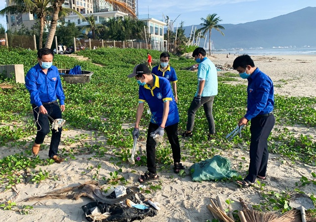 Đoàn viên thanh niên thành phố Đà Nẵng dọn rác tại bãi biển. nguồn: thanhnien.vn |