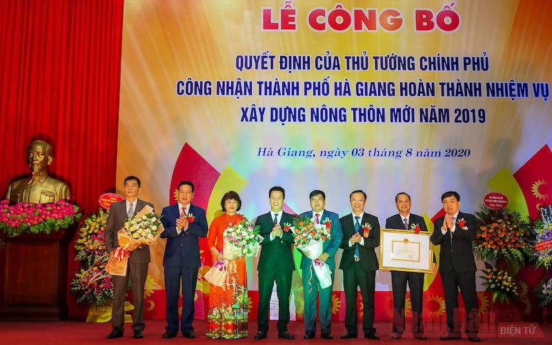 Tối 3/8, UBND tỉnh Hà Giang tổ chức lễ công bố quyết định của Thủ tướng Chính phủ về công nhận thành phố Hà Giang, tỉnh Hà Giang, hoàn thành nhiệm vụ xây dựng nông thôn mới năm 2019 - Ảnh: Báo Nhân dân |