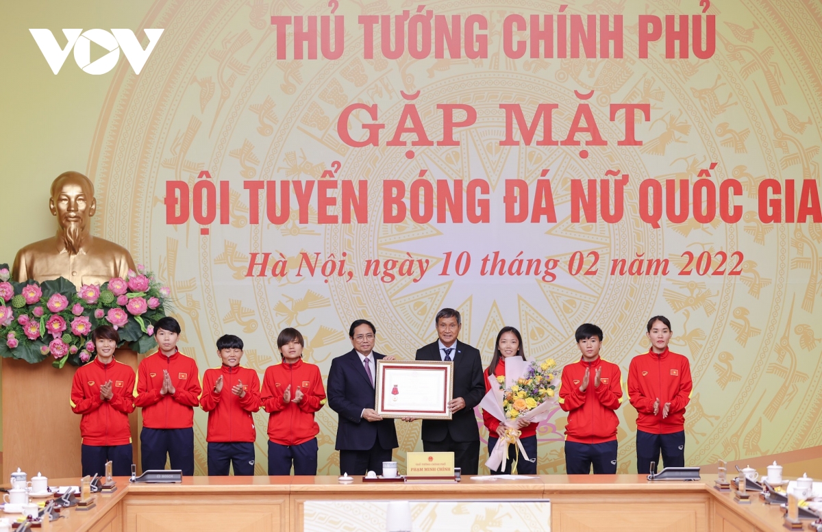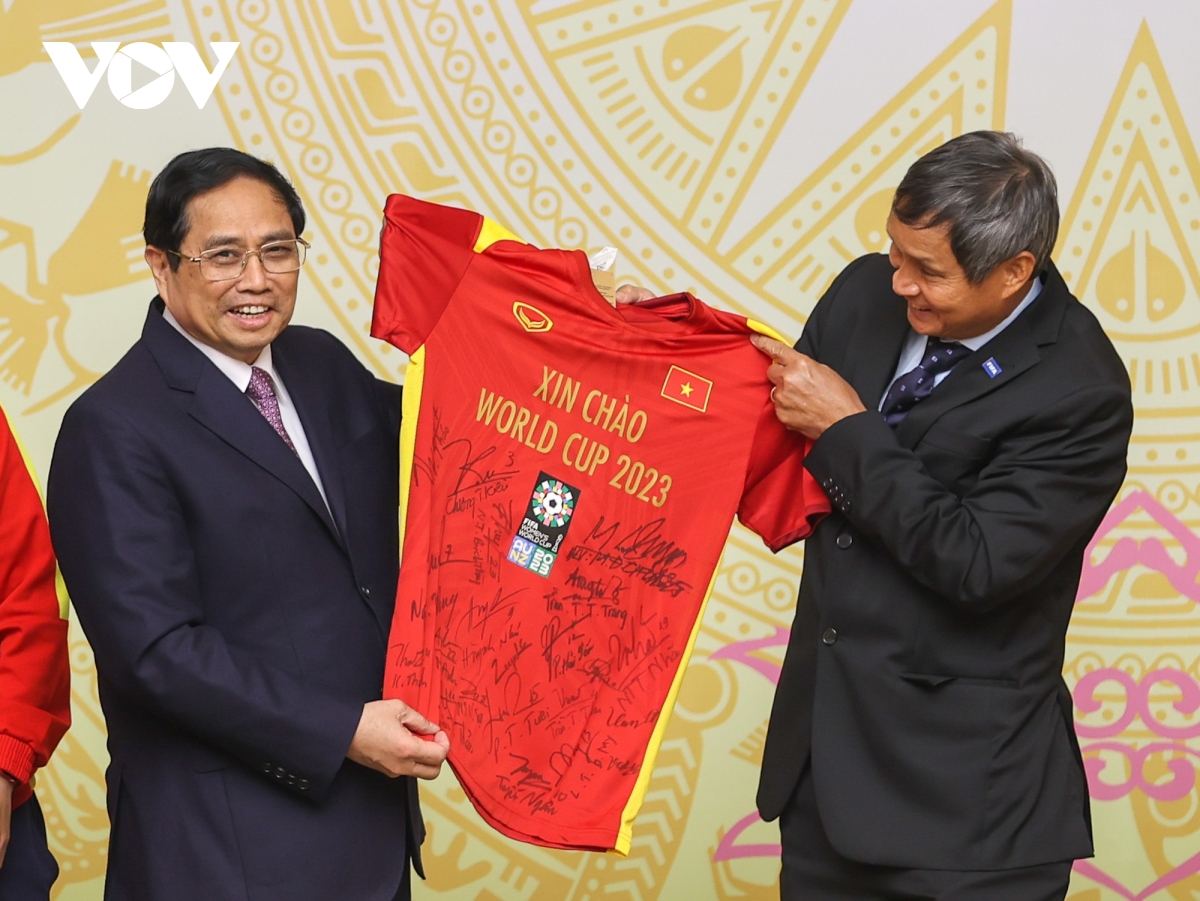 Tại buổi gặp mặt, Thủ tướng Phạm Minh Chính nhấn mạnh, việc đội tuyển nữ Quốc gia giành quyền tới World Cup là chiến công lớn nhất trong lịch sử bóng đá Việt Nam. Thành tích này là niềm vui cho cả nước trong những ngày đầu năm mới. Thủ tướng khẳng định các em không phải là những cô gái vàng của thể thao Việt Nam mà là những cô gái kim cương của thể thao nước nhà.