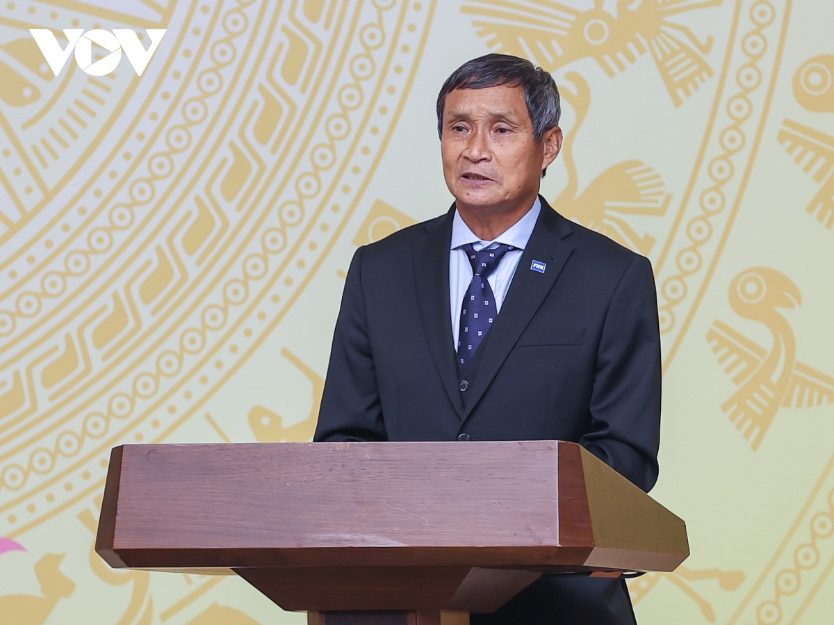 Ông Mai Đức Chung, huấn luyện viên của đội tuyển nữ xúc động chia sẻ những cảm xúc của mình và gửi lời cảm ơn tới Chính phủ, Thủ tướng Chính phủ, VFF và người hâm mộ cả nước đã luôn quan tâm cổ vũ, động viên tới đội tuyển bóng đá nữ quốc gia.