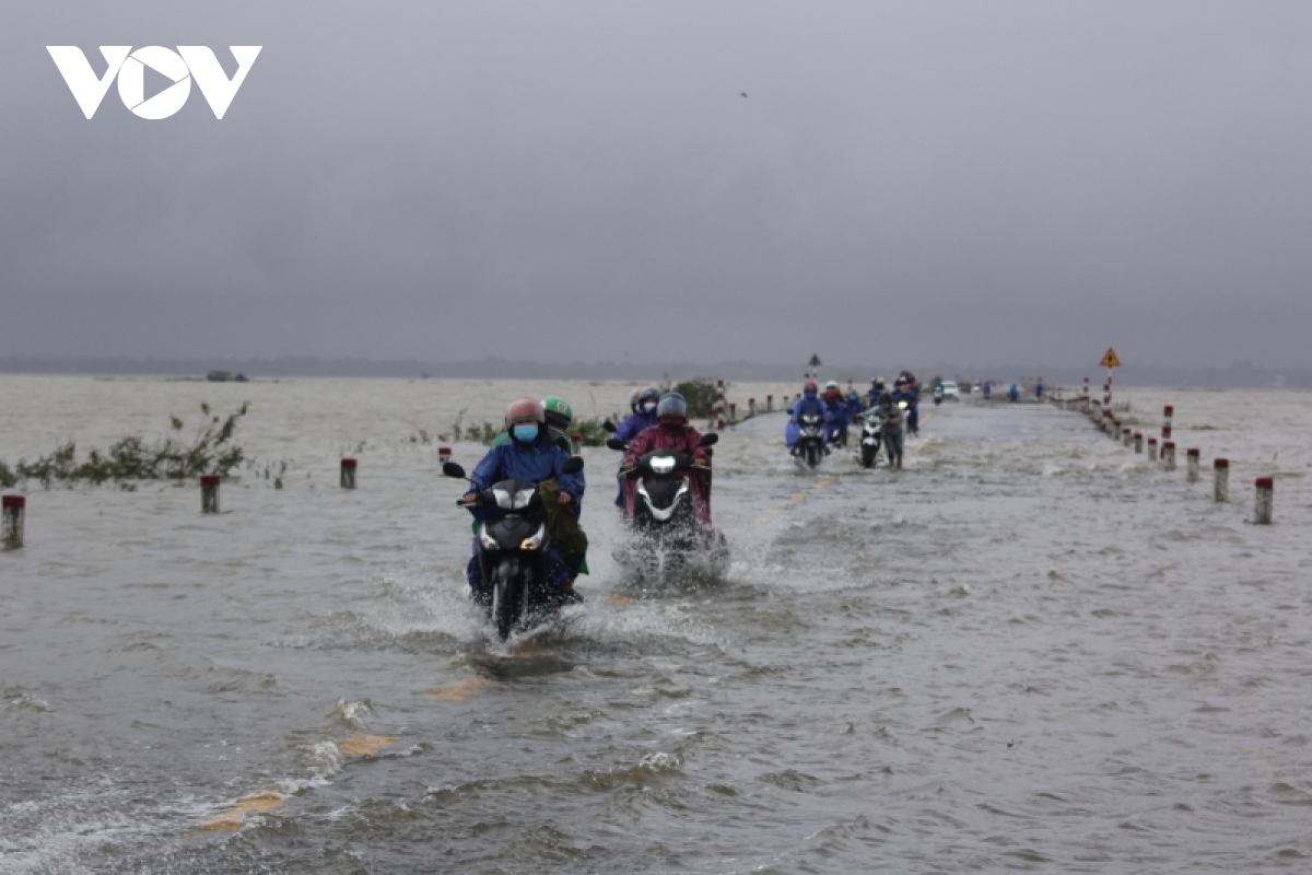 Mưa lũ gây ngập lụt, chia cắt nhiều tuyến giao thông huyết mạch ở tỉnh Quảng Trị. Ảnh: VOV |