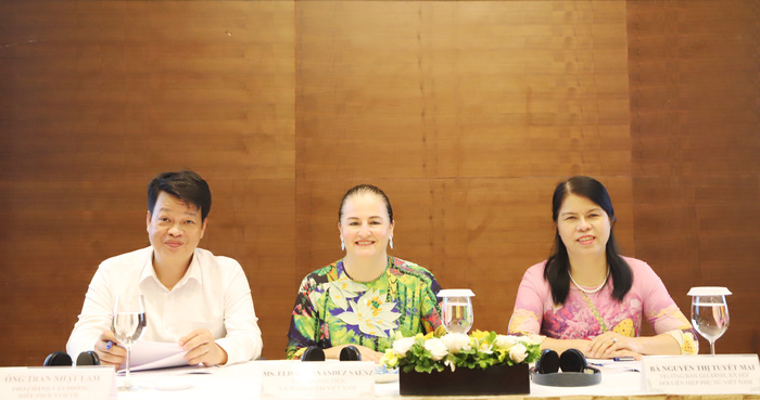 Bà Elisa Fernandez Senz - Trưởng Đại diện UN Women tại Việt Nam (ở giữa) cùng các đại biểu tại hội thảo. (Ảnh: phunuvietnam.vn) |