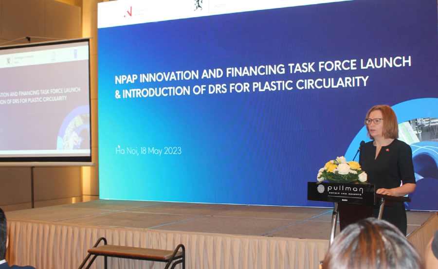 Tại hội thảo, Bà Mette Møglestue – Phó Đại sứ Na Uy tại Hà Nội cho biết “Hệ thống đặt cọc – hoàn trả đã được minh chứng là hệ thống thực hiện tốt nhất khi có thể thu gom và tái chế với tỷ lệ cao nhất các loại vỏ hộp đồ uống. Được coi là hình mẫu về thu hồi và tái chế vỏ hộp, DRS của Na Uy là một trong những mô hình hoạt động hiệu quả trên thế giới, gắn liền cùng cơ chế thực hiện EPR”. Nêu bật về mô hình hợp tác thành công của Na Uy giữa chính phủ - đơn vị nghiên cứu – doanh nghiệp , Bà Møglestue nhấn mạnh “Trong khuôn khổ hợp tác của chúng tôi với Bộ Tài nguyên và Môi trường Việt Nam, cùng các đối tác liên quan như Chương trình đối tác hành động Quốc gia về Nhựa (UNDP Việt Nam), chúng tôi đánh giá cao cơ hội chia sẻ câu chuyện thành công của Na Uy và các thông lệ quốc tế khác để hỗ trợ việc củng cố khung pháp lý của Việt Nam về EPR và DRS”.
