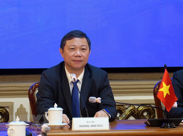 Phó Chủ tịch UBND Thành phố Hồ Chí Minh Dương Anh Đức phát biểu tại buổi hội đàm - Ảnh: Xuân Khu/TTXVN |