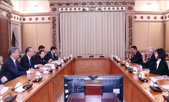 Phó Chủ tịch UBND Thành phố Hồ Chí Minh Võ Văn Hoan tiếp ông Lưu Hiểu Khải, Chủ tịch Chính hiệp tỉnh Vân Nam, Trung Quốc - Ảnh: TTXVN |