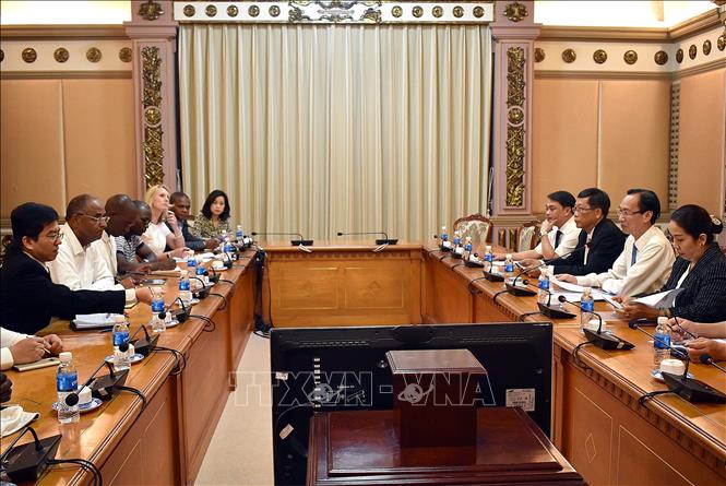 Phó Chủ tịch Thường trực UBND TP Hồ Chí Minh Lê Thanh Liêm tiếp Bộ trưởng, Tổng Thư ký của Tổng thống nước CH Bờ Biển Ngà Achi Patrick - Ảnh: TTXVN |