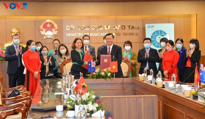 Thứ trưởng Nguyễn Văn Phúc và bà Robyn Mudie, Đại sứ Australia tại Việt Nam ký kết Thỏa thuận bổ sung về Chương trình Phát triển Nguồn nhân lực Việt Nam - Australia 2021-2025 - Ảnh: Thu Hằng/VOV5 |