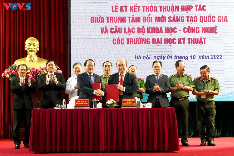 Trung tâm Đổi mới sáng tạo Quốc gia (NIC) và Câu lạc bộ Khoa học và công nghệ các trường đại học kỹ thuật ký kết thỏa thuận hợp tác. Ảnh: Ánh Huyền/ VOV5 |