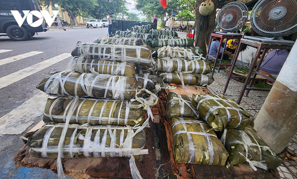 Những ngày này, nhà ông Nguyễn Thành Long, thành viên trong Câu lạc bộ bán tải Đà Nẵng ở phường Hòa Hải, quận Ngũ Hành Sơn trở thành nơi để bà con đến cùng gói, nấu bánh gửi ra miền Bắc. Suốt cả đêm qua đến trưa nay, ngoài hiên nhà, bếp vẫn rực lửa. Cả đêm bà con trong xóm canh trực nấu bánh. Sáng nay, nồi bánh đầu tiên đã chín, bà con nhanh tay đưa lên xe ô tô gửi ra người dân bị lũ lụt ở phía Bắc. Cả đêm qua, ông Đặng Tâm, hơn 70 tuổi ở quận Ngũ Hành Sơn trực canh nồi bánh tét để kịp sáng sớm chuyển ra hỗ trợ đồng bào ngoài Bắc. “Tôi tuy rằng tuổi đã lớn nhưng mà cố gắng cùng gói bánh chưng cùng anh chị em để gửi ra giúp đồng bảo bị bão lụt ở các tỉnh phía Bắc. Chúng tôi tham gia từ tối qua đến giờ, làm đến 11 giờ đến 12 giờ đêm mới về, hôm nay chúng tôi làm tiếp”.