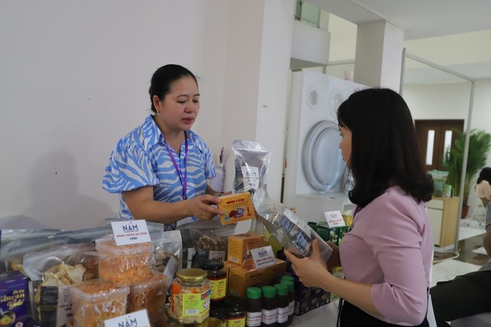 Nữ trí thức quảng bá, giới thiệu tài sản trí tuệ tại Triển lãm Tài sản trí tuệ và kết quả đổi mới sáng tạo của nữ trí thức Việt Nam, ngày 21/4/2023. Ảnh Phunu.vn |