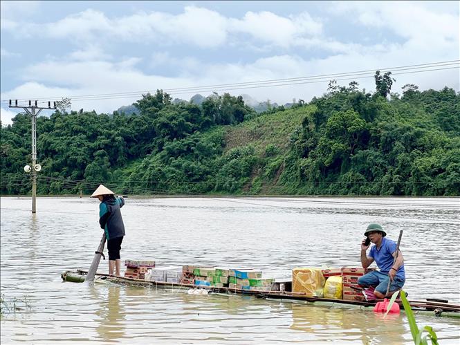 Thuyền đưa thức ăn, nước uống cứu trợ đến người dân vùng lụt ở Bắc Kạn. Ảnh minh họa: TTXVN phát |