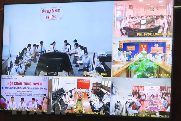 22 bệnh viện tuyến dưới tham gia kết nối với Trung tâm Hội chẩn tư vấn, khám chữa bệnh từ xa - Bệnh viện Thống Nhất. (Ảnh: Đinh Hằng/TTXVN) |