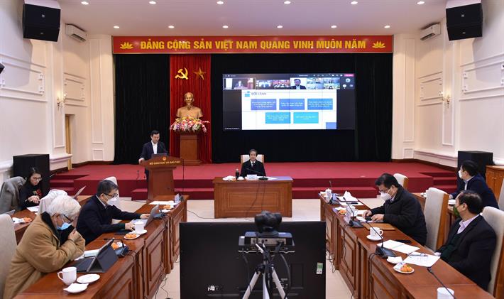 Quang cảnh phiên họp tại điểm cầu trực tiếp Bộ GDĐT. Ảnh: Bộ GDĐT |
