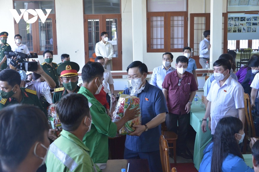 Tại đây, Chủ tịch Quốc hội Vương Đình Huệ cho biết gói chính sách tài khoá, tiền tệ với quy mô 350 nghìn tỷ đồng vừa được Quốc hội thông qua đã dành nguồn lực hỗ trợ việc xây dựng các thiết chế cho công nhân lao động. Chính phủ đang chuẩn bị danh mục dự án thực hiện gói hỗ trợ này để trình Ủy ban Thường vụ Quốc hội.