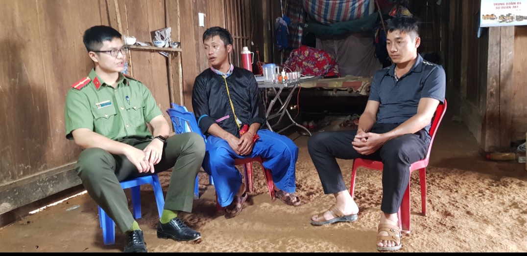 Công an đến nhà dân thăm hỏi ở xã Tà Tổng, huyện Mường Tè. Ảnh Ngọc Ạm |
