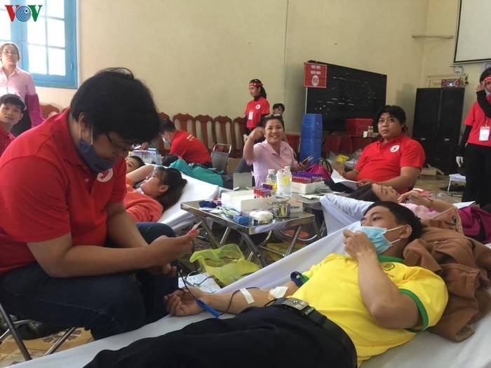 Các tình nguyện viên tham gia hiến máu tại Chương trình Hành trình Đỏ - Ảnh: VOV |