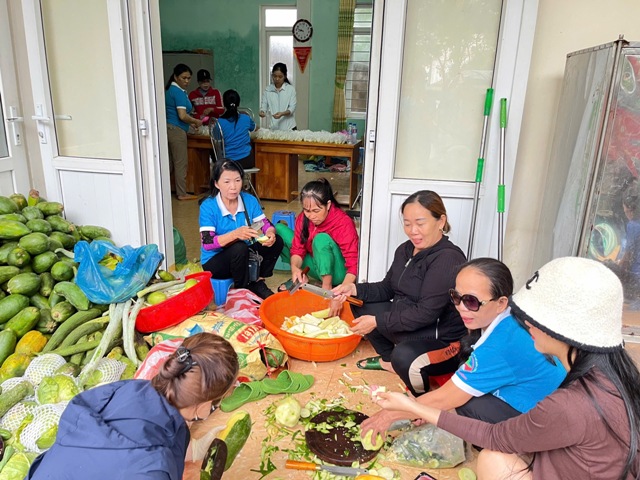 Ngôi nhà của bà Trần Thị Nở, ở thôn Hòa Luật Nam, xã Cam Thủy, huyện Lệ Thủy, tỉnh Quảng Bình nhộn nhịp hơn vì đón những vị khách là các tình nguyện viên của Câu lạc bộ thiện nguyện cùng những cá nhân từ các địa phương khác hỗ trợ người dân ở các vùng bị ngập nặng. Bếp cơm di dộng dã chiến của cộng đồng tình nguyện Việt Nam được tổ chức tại đây hỗ trợ người dân vùng lũ của Quảng Bình. Vinh dự khi được tham gia hỗ trợ các hoạt động thiện nguyện, bà Trần Thị Nở chia sẻ: Có đoàn từ thiện bếp cơm di động hỗ trợ cho đồng bào vùng lũ… Chúng tôi xin làm hậu phương hỗ trợ những người tuyến đầu chống lũ, bà con ngập lụt. Nhà tôi may mắn cao, ở tầng 2 nên tầng 1 để dành cho các cô, chú, các cháu để phục vụ công tác đỏ lửa, nước nôi, chăm sóc các đoàn đi cứu trợ các địa phương.