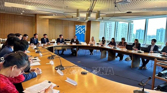 Ngày 12/10, tại trụ sở tỉnh Val de Marne, đoàn đại biểu tỉnh Yên Bái đã tham dự phiên họp đánh giá tình hình hợp tác giữa hai bên - Ảnh: Thu Hà/ TTXVN |