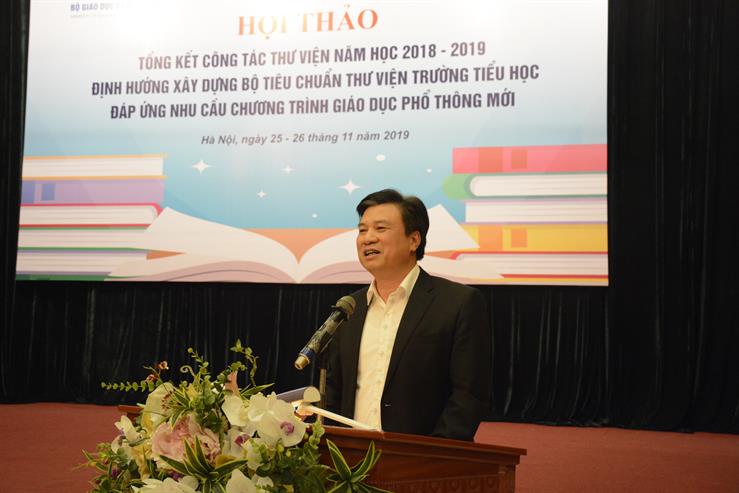 Trong 2 ngày 25-26/11, tại Hà Nội, Bộ Giáo dục - Đào tạo phối hợp với tổ chức phi chính phủ quốc tế hoạt động trong lĩnh vực giáo dục Room to read, tổ chức Hội thảo Tổng kết công tác thư viện năm học 2018-2019 định hướng xây dựng bộ tiêu chuẩn thư viện trường tiểu học đáp ứng nhu cầu chương trình giáo dục phổ thông mới.