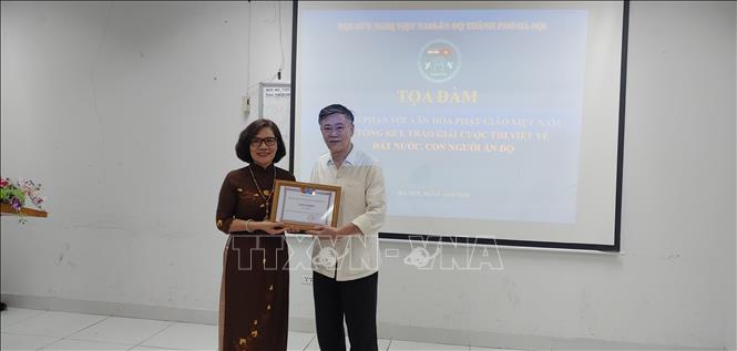 Ban tổ chức trao giải cho các tác giả đoạt giải cuộc thi viết về đất nước, con người Ấn Độ - Ảnh: TTXVN |