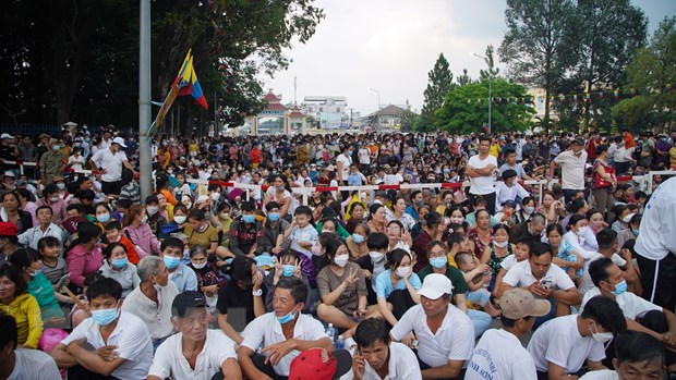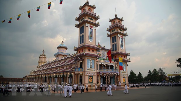 Tòa thánh Cao đài Tây Ninh thu hút hàng ngàn tín đồ, người dân đếm tham quan, hành hương nhân Đại lễ Hội yến Diêu Trì Cung năm 2022. (Ảnh: Thanh Tân/TTXVN |