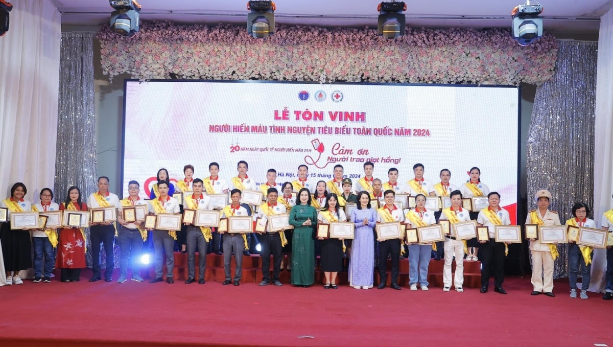 Chiều nay (15/6), tại Hà Nội, Ban Chỉ đạo quốc gia vận động hiến máu tình nguyện tổ chức Lễ tôn vinh 100 người hiến máu tình nguyện tiêu biểu toàn quốc năm 2024.