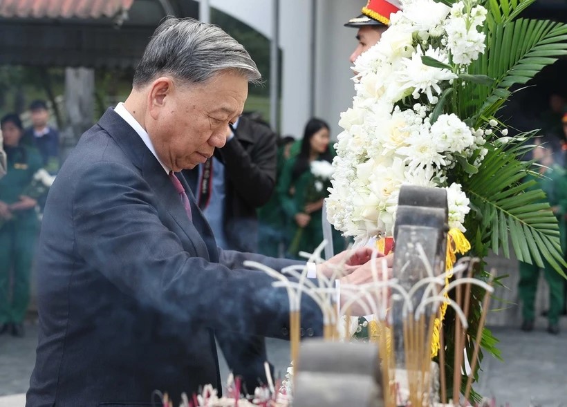 Tại Khu mộ Tổng Bí thư Trần Phú (huyện Đức Thọ), Tổng Bí thư Tô Lâm cùng Đoàn công tác Trung ương đến dâng hoa, dâng hương tưởng niệm Tổng Bí thư Trần Phú, bày tỏ niềm thành kính, lòng biết ơn và sự tri ân sâu sắc đối với những công lao, cống hiến to lớn của Tổng Bí thư Trần Phú trong sự nghiệp cách mạng của Đảng và dân tộc.