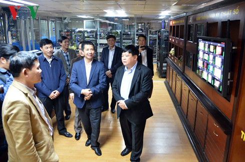 | Tổng Giám đốc Nguyễn Thế Kỷ hỏi thăm tình hình công việc, đời sống cán bộ công nhân viên VTC, đồng thời động viên cán bộ, công nhân viên làm việc trong dịp Tết Đinh Dậu. |