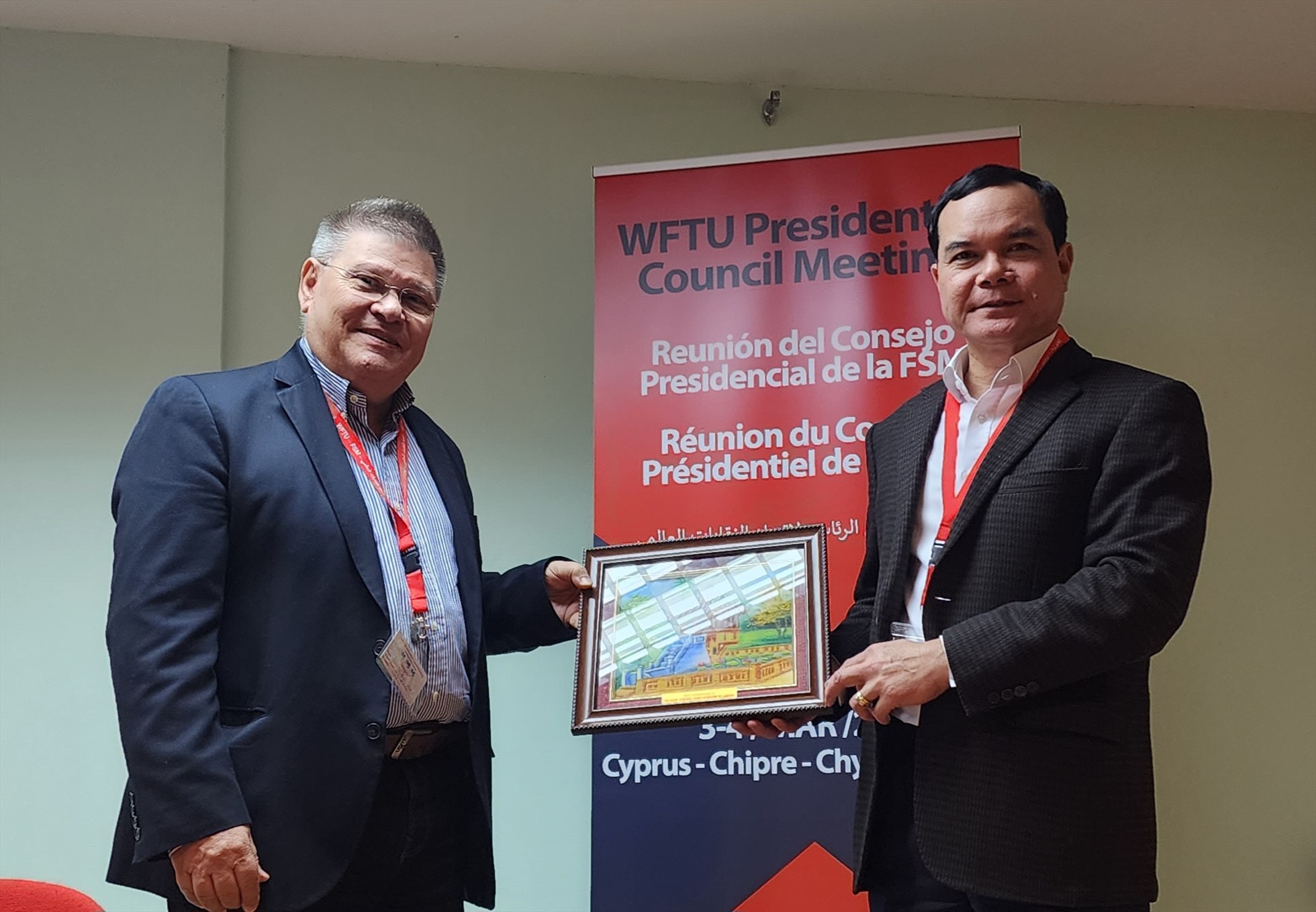 Nhận lời mời của Liên hiệp Công đoàn Thế giới (WFTU), trong các ngày 10 và 11/03, Chủ tịch Tổng Liên đoàn Lao động Việt Nam (LĐLĐVN), Phó Chủ tịch Liên hiệp Công đoàn Thế giới, Nguyễn Đình Khang thăm và làm việc tại Cộng hòa Nam Phi.