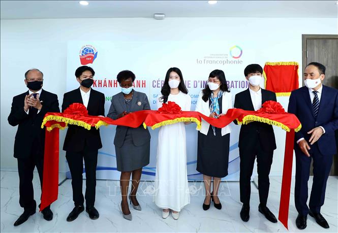 Lễ cắt băng khai trương Phòng Pháp ngữ tại Học viện Ngoại giao. Ảnh: TTXVN |