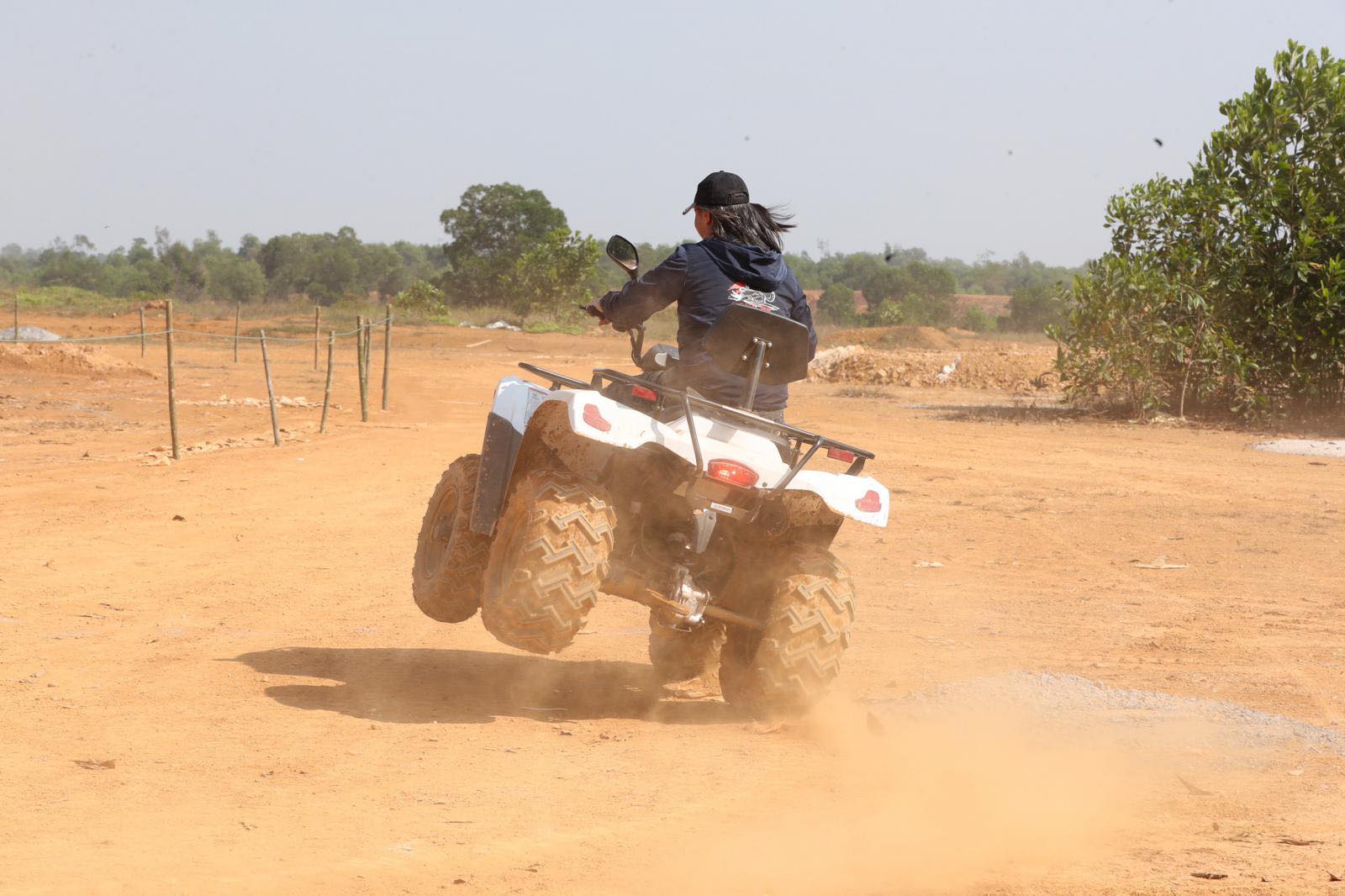 Dù ít khó khăn hơn so với chặng đường xuyên rừng, nhưng khi cầm lái trong không gian rộng hàng chục héc ta với nhiều chướng ngại vật dựng sẵn, du khách vẫn tận hưởng được trọn vẹn cảm giác mới lạ cùng loại xe bốn bánh hết sức độc đáo này.