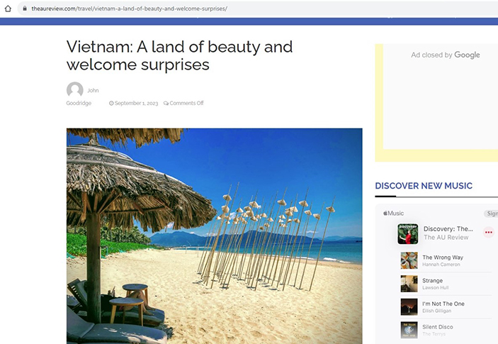 Trang mạng theaureview của Australia vừa đăng bài viết mô tả Việt Nam là “vùng đất tươi đẹp và đón chào những bất ngờ”, một điểm đến du lịch nổi tiếng với cảnh quan tuyệt đẹp, di tích lịch sử và văn hóa hấp dẫn.