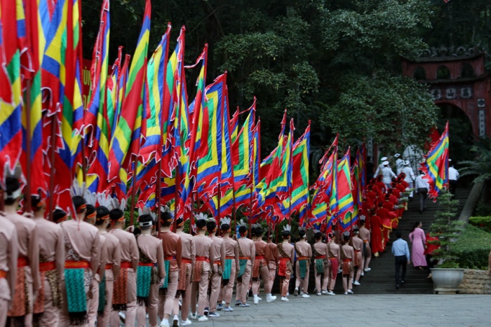 100 con Lạc cháu Hồng rước cờ hội hội tụ về Đền Hùng trong ngày Giỗ Tổ. Ảnh: phutho.gov.vn |