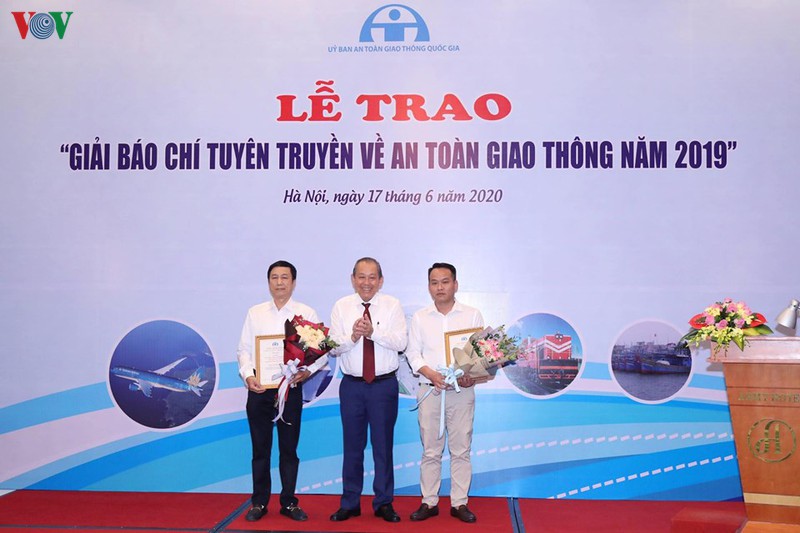 Chiều 17/06, tại Hà Nội, Ủy ban An toàn giao thông quốc gia tổ chức Lễ trao Giải thưởng “Báo chí tuyên truyền về an toàn giao thông năm 2019”. Phó Thủ tướng Thường trực Chính phủ Trương Hòa Bình, Chủ tịch Ủy ban An toàn giao thông quốc gia tham dự.