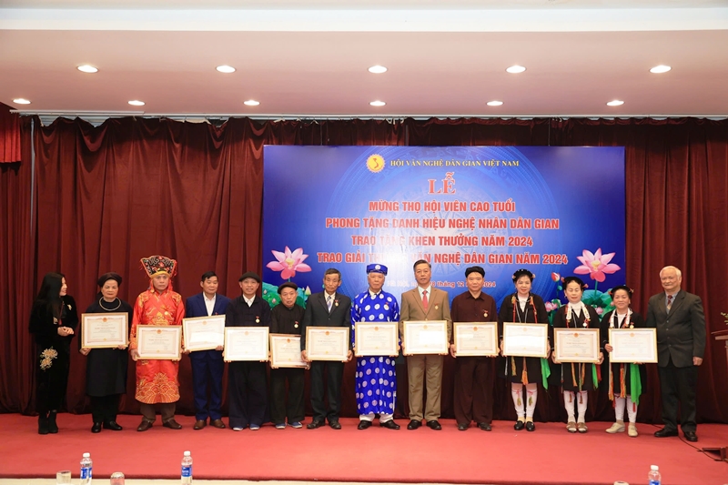 Dịp này, Ban tổ chức trao Kỷ niệm chương mừng thọ cho 52 hội viên người cao tuổi; tặng Bằng khen vì sự nghiệp văn nghệ dân gian cho 7 cá nhân và 4 tập thể; truy tặng, phong tặng danh hiệu Nghệ nhân dân gian cho 25 hội viên Hội Văn nghệ dân gian Việt Nam.