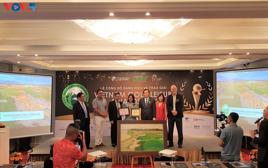 Trao giải sân golf tốt nhất Việt Nam cho Hoiana Shores Golf Club. Ảnh: Ngọc Anh/ VOV5 |